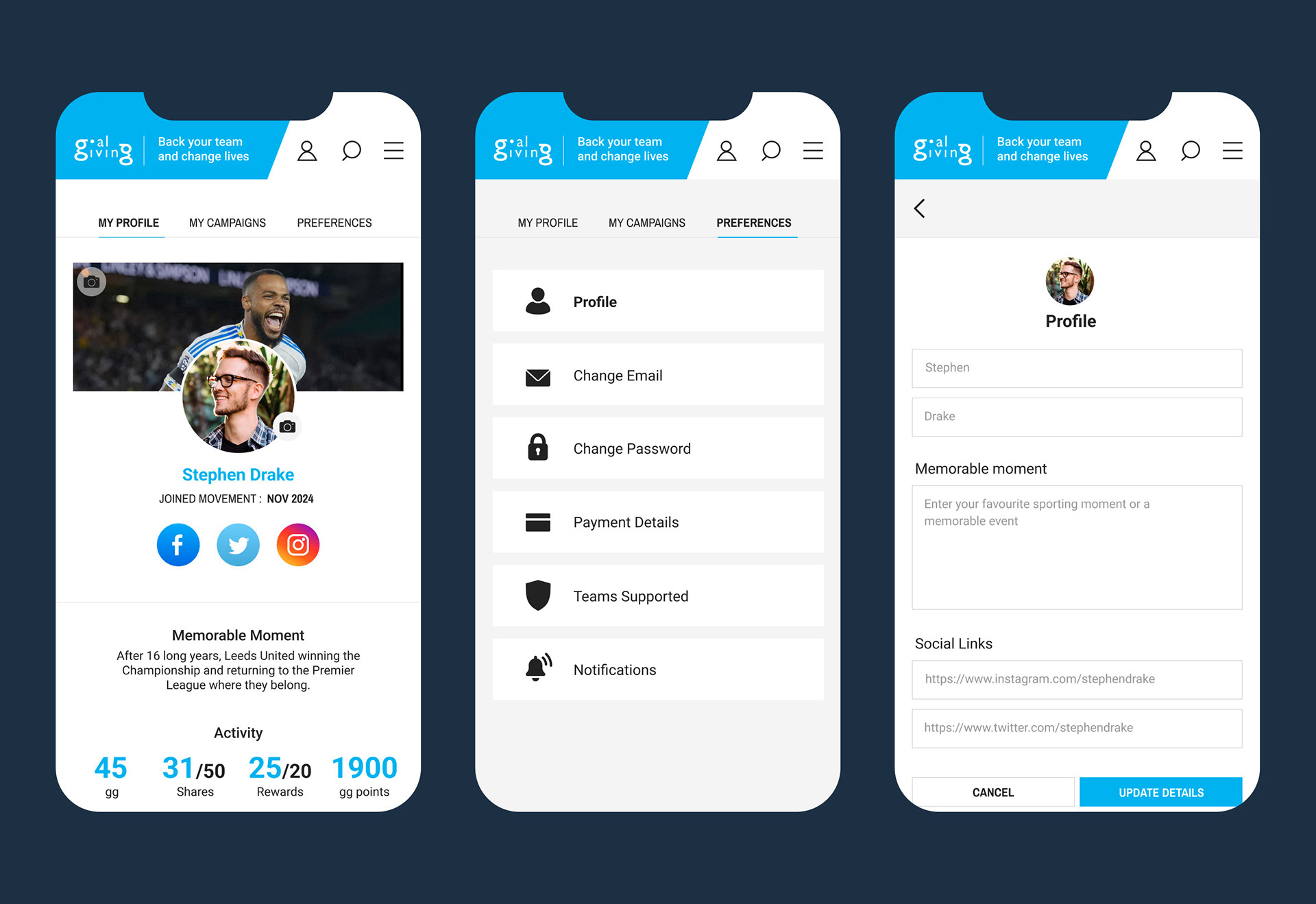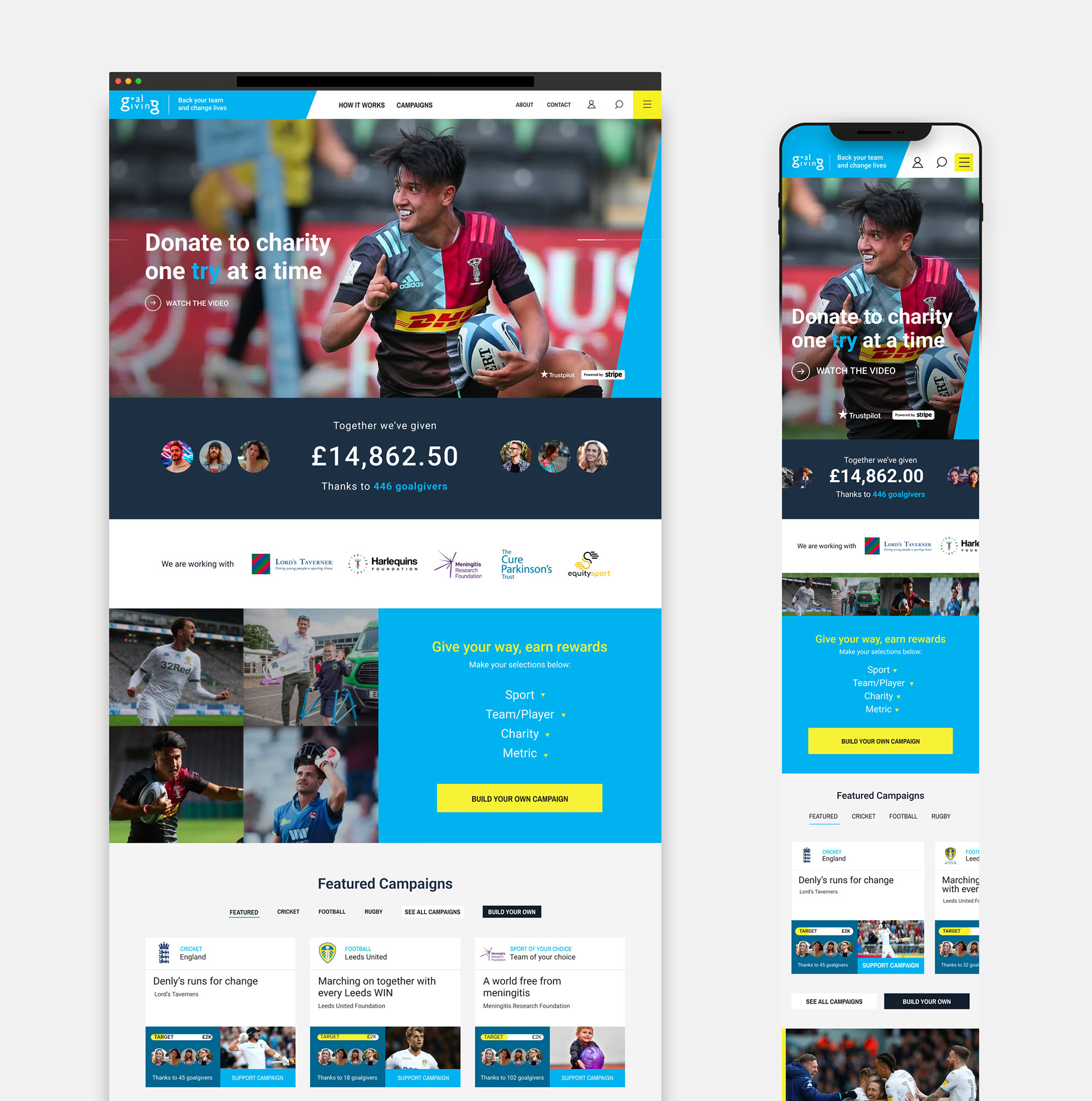 Goalgiving an online platform which revolves around sports. Users are given the opportunity to make donations based on the outcome of a sports event and it allows people to create fundraising campaigns based on the sport of their choice.