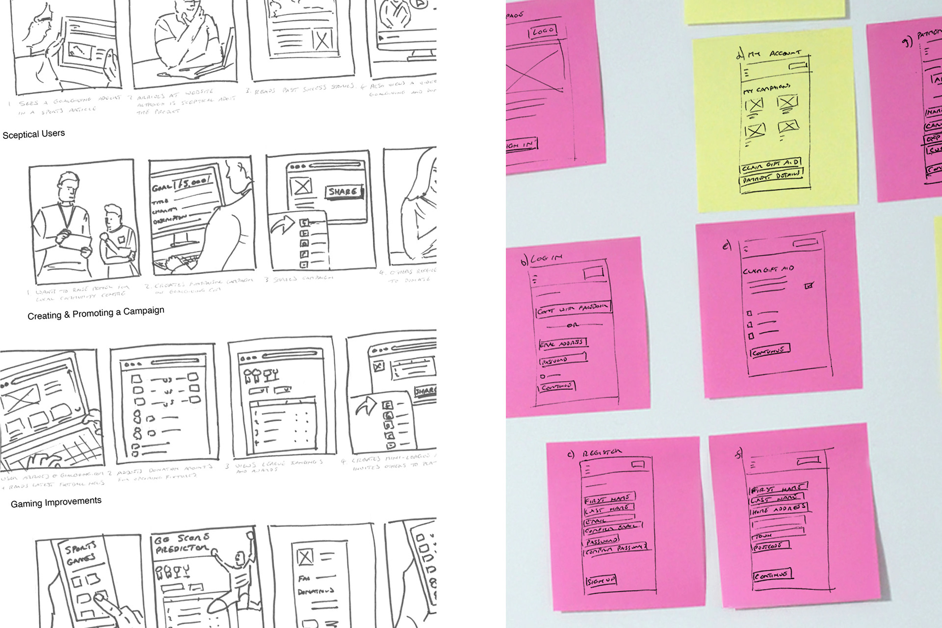 As part of the development stage of the project a design hypothesis was established in addition to storyboards and user flows to visualise user journeys and key interactions.