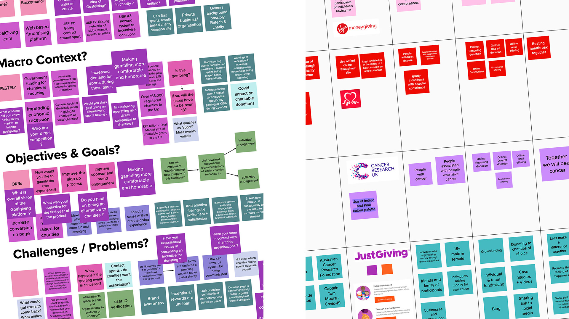 This began with an interrogation of the brief, followed by a detailed review of company documents, a stakeholder interview and a comprehensive competitor analysis of organisations operating in both direct and indirect competition with Goalgiving.
