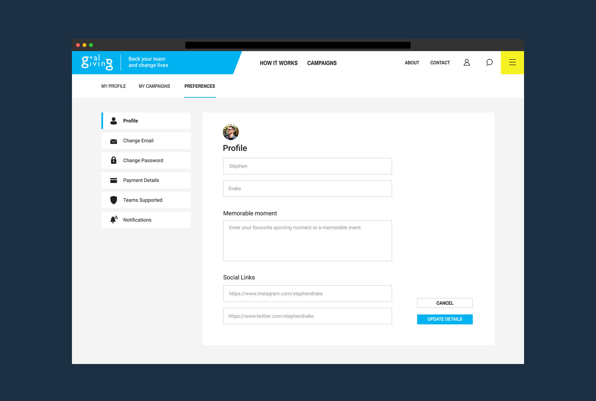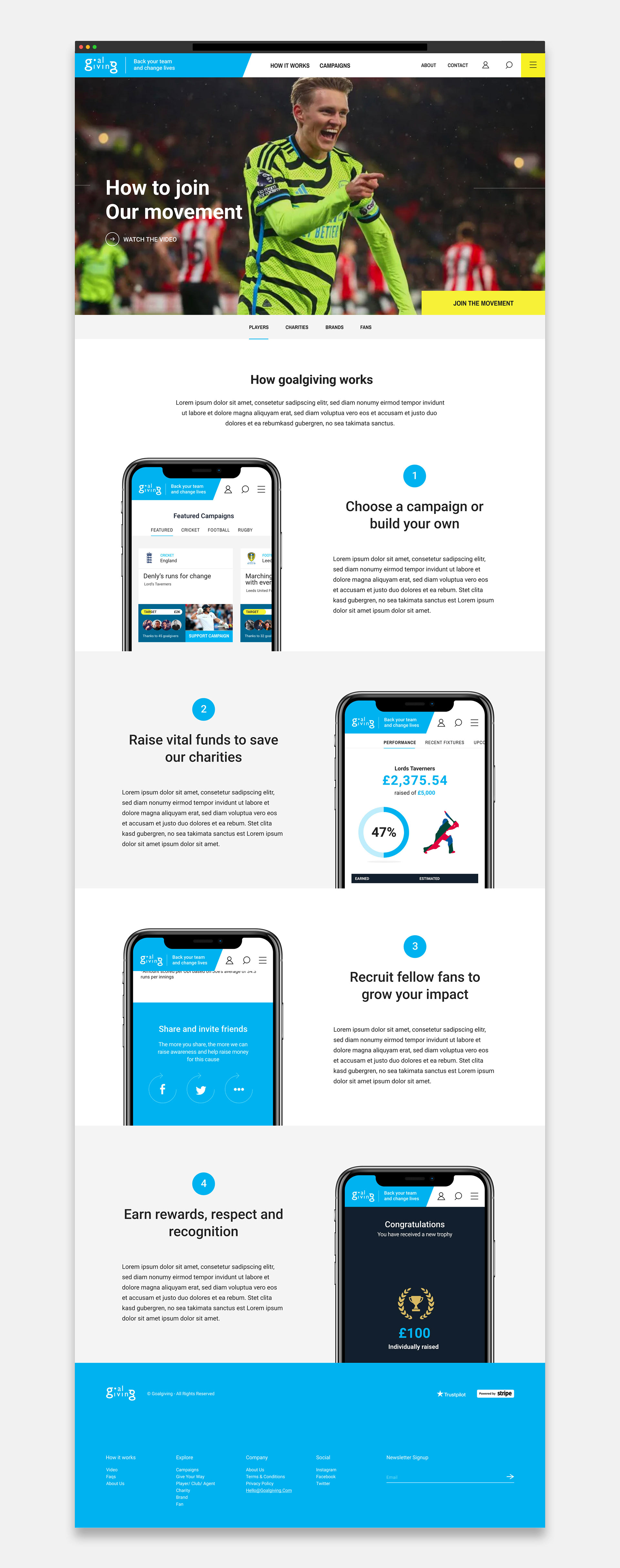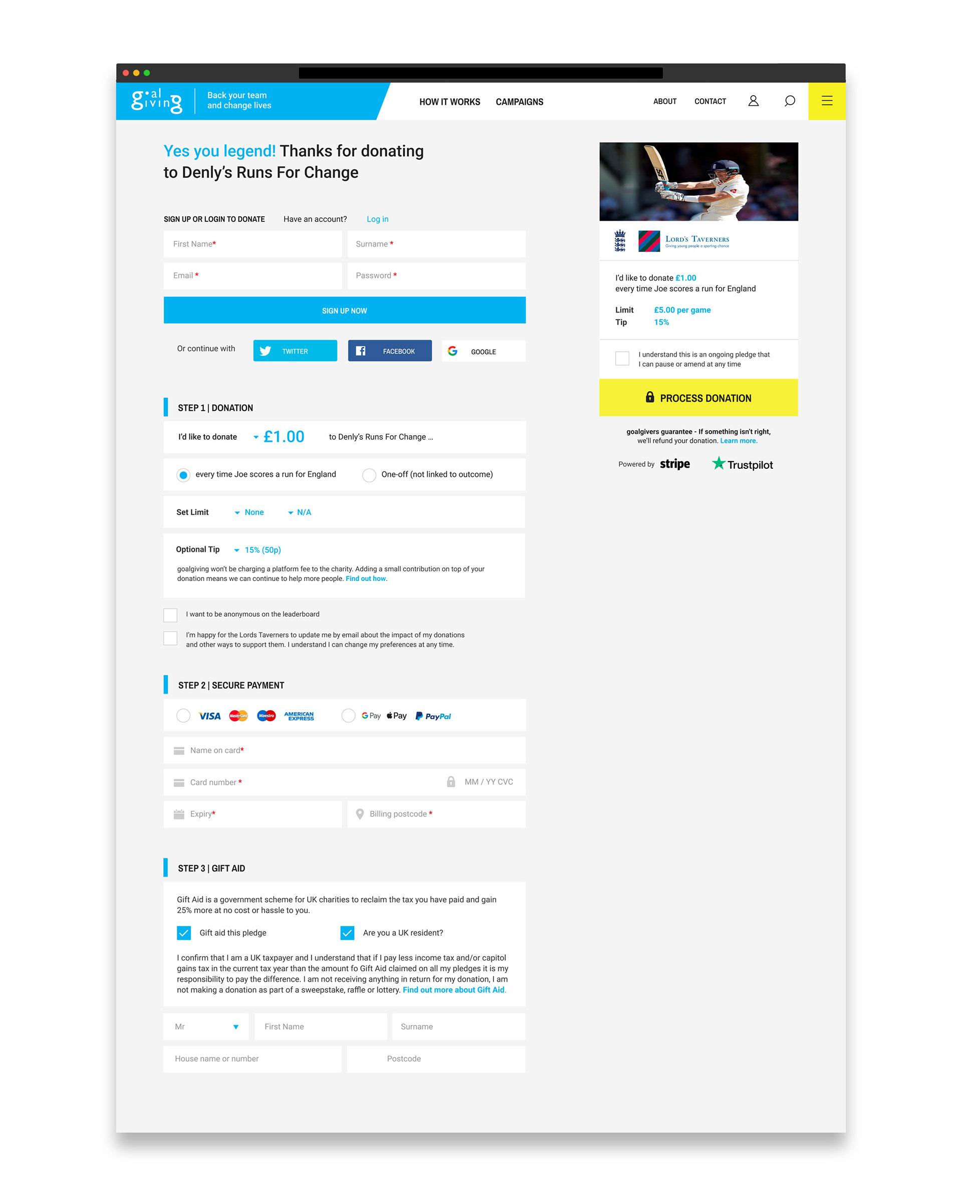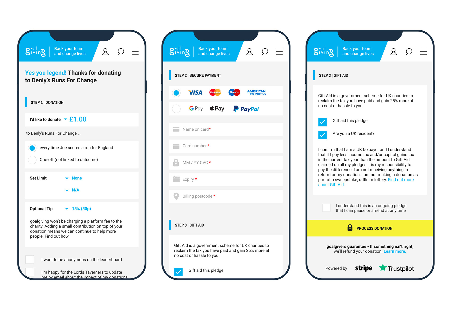The brief was to identify improvements to the Goalgiving website, to enhance usability and create a more engaging and shareable experience.
