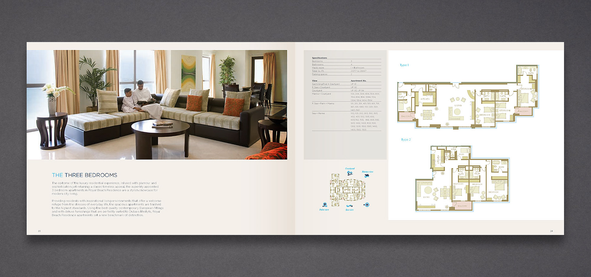 A photo shoot was commissioned to capture the extensive range of facilities, as well as the striking views of Dubai Marina and the Arabian Gulf. Detailed building and floor-plans were also created and displayed in a clean and intuitive layout.